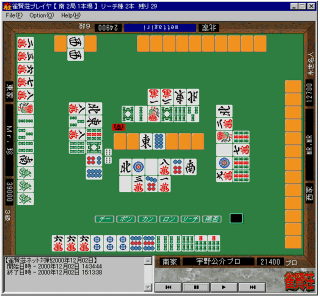 これがAリーグプロの底力なのか――。配牌でアンコがふたつできており、四暗刻の可能性をひしひしと感じるではありませんか。ドラは じつは麻雀プロとは、うまい人ではなく、ツイている人であるという説があります。このAリーグ配牌を見て、Cリーグの高浜プロは、なかばあきれ、なかばいじけていました。どうせオレにはCリーグの配牌しか来ねーよ、と。 |