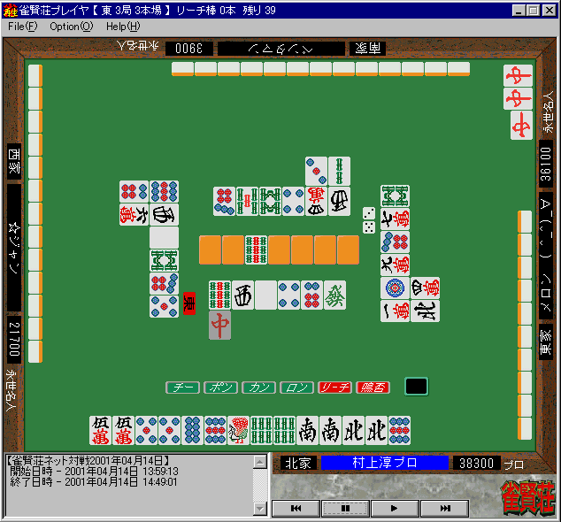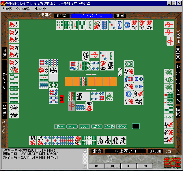 | ● | 場には 「ここは 村上プロは 決着がついたのは1巡後のこと。☆ジャン氏のツモ切りした なんと |