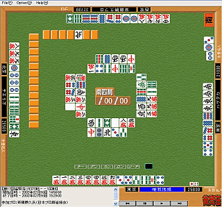 さすがは雀賢荘の2大エースです。結局、アガったのは唯我独損氏。ツモのみの500オールです(牌図2)。こうして勝負は次局の1本場に持ち越されました。 けれども結果から見るならば、このアガリで逆転しなかったことにより斉藤プロのト ップが決まったのでした。やはり幸運の女神は前髪だけ。唯我独損氏はこの局に賭ける カウンター作戦を取ったのですから、ここは一発で決めなければならなかったのです。 そのためには二つの道がありました。それは、(1)6巡目に切った 次局1本場には斉藤プロがピンフドラ1をアガって無事終了。このときのコメントはおとぼけでした。 斉藤「普通に打ってただけですが展開に助けられましたねー。まあ、こんなもんじゃないですか?」 |